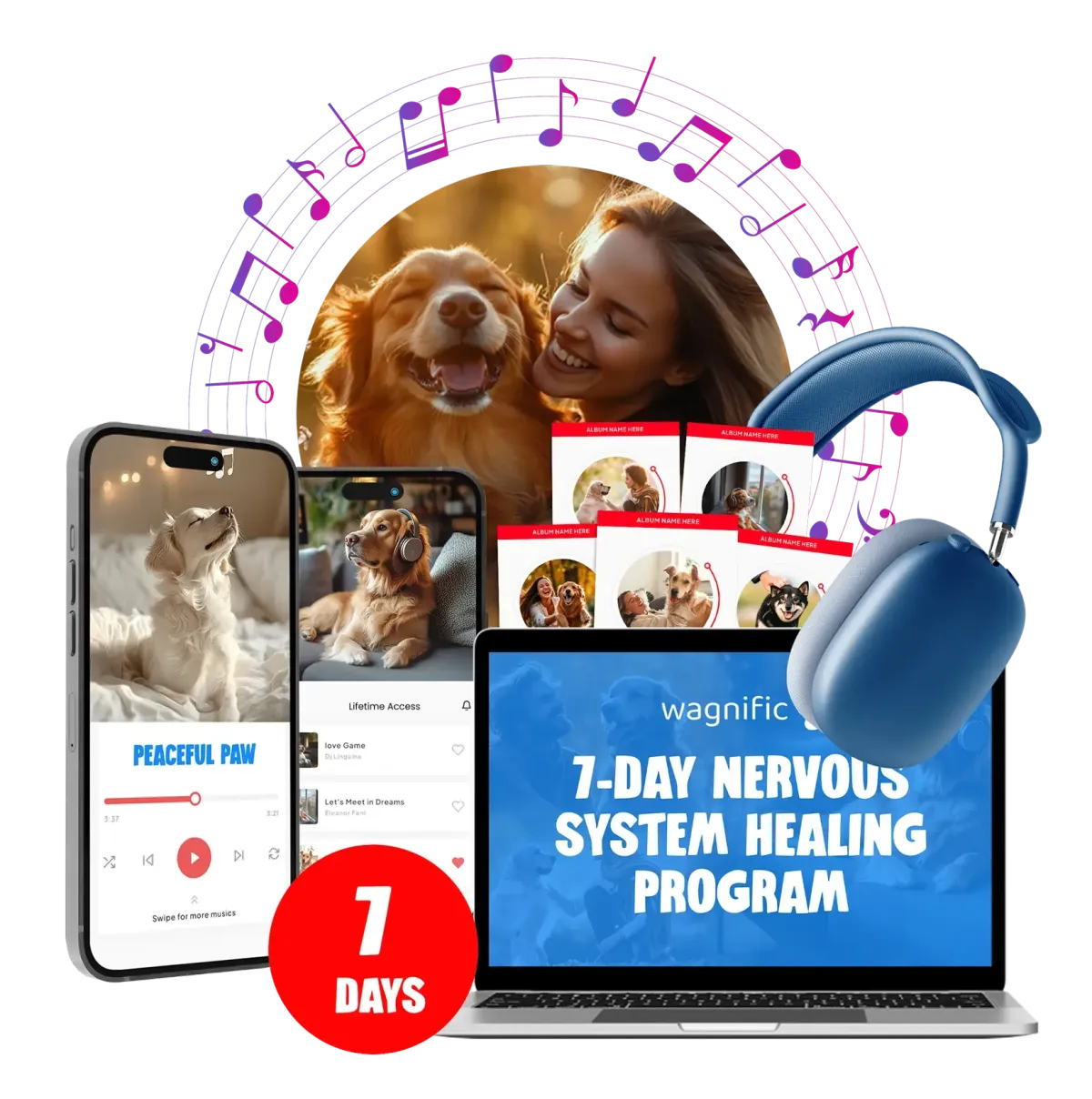 Regular “calming dog music” lacks the precise frequency ranges (432–638Hz), rhythmic patterns (60–80 BPM), and safety signals that make Wagnific effective. Our melodies are specifically engineered based on canine neurology research and clinical testing, not human music preferences.